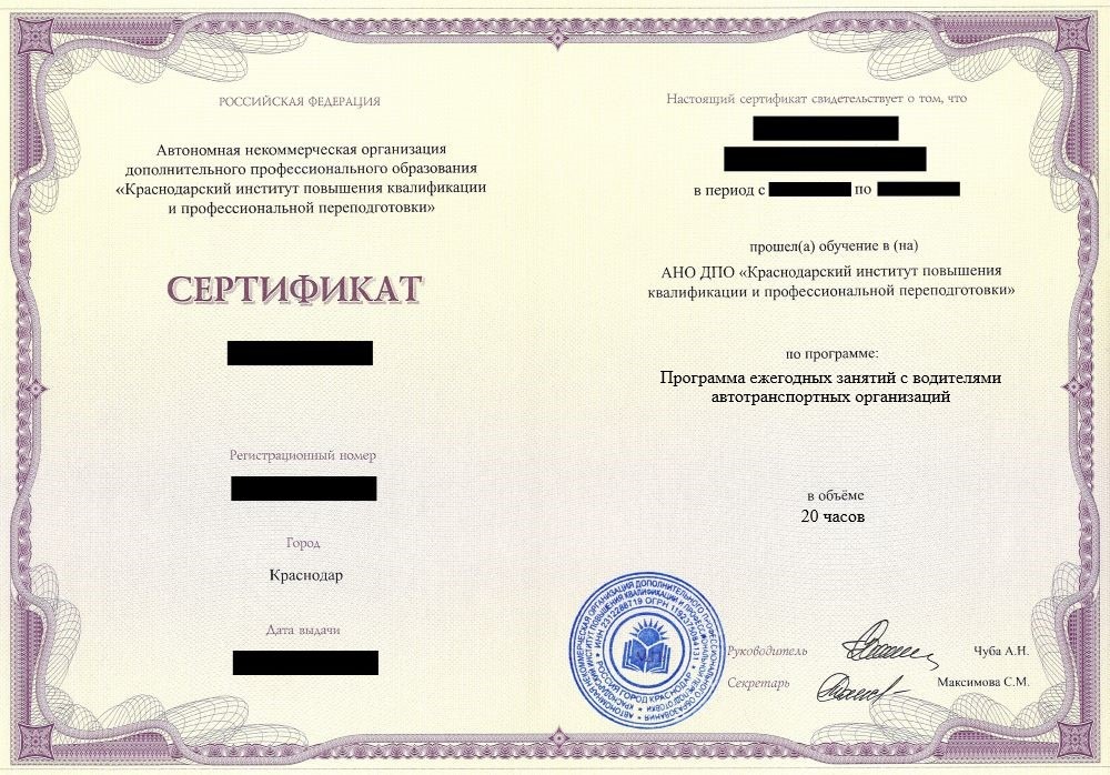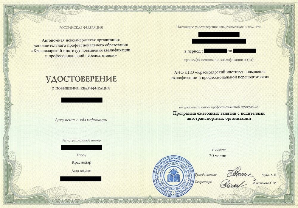 Курсы повышение квалификации программа ежегодных занятий с водителями автотранспортных организаций в Туле