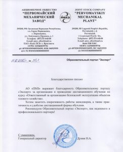 Благодарственные письма компании Эксперт в Туле
